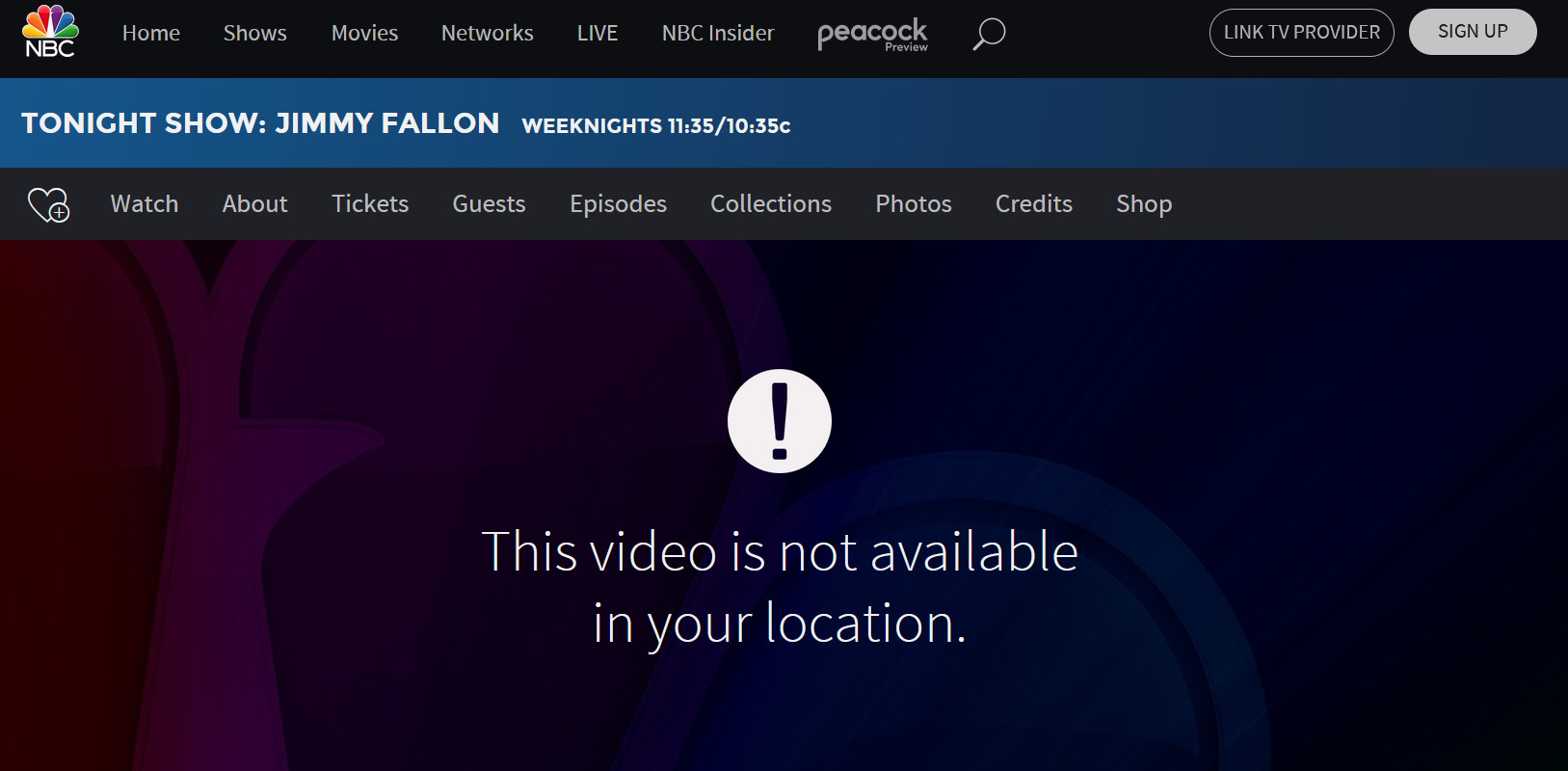 ただし、海外テレビ局の公式サイトでは日本からのアクセスを遮断しているケースも多いです。上の画像は日本からアメリカのテレビ局「NBC」にアクセスした様子。「This video is not available in your location.(お住まいの地域では再生できません)」と表示されているのが分かるかと思います